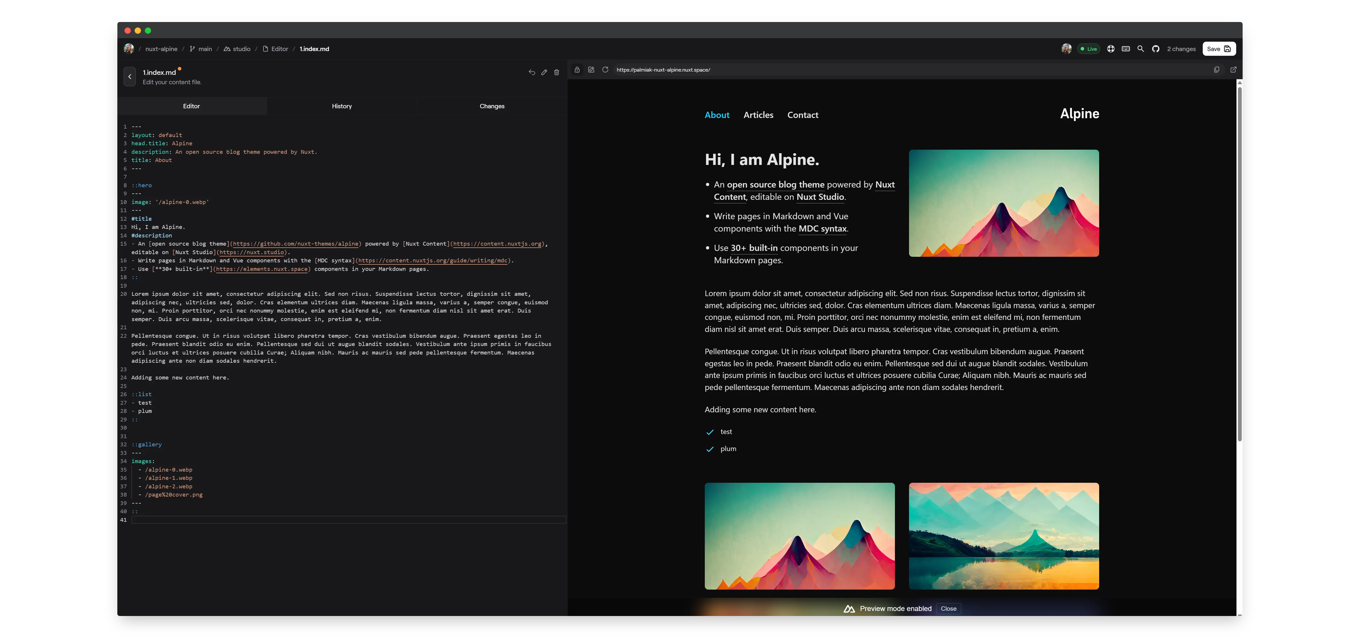 But, when your CMS is based on Markdown files, you can use whatever editor you want. For example, if you use Nuxt as your CMS, everyone can choose which editor they prefer. It can be Visual Studio Code, FrontMatter CMS, or maybe Nuxt Studio. Everyone can pick the app they like the most.