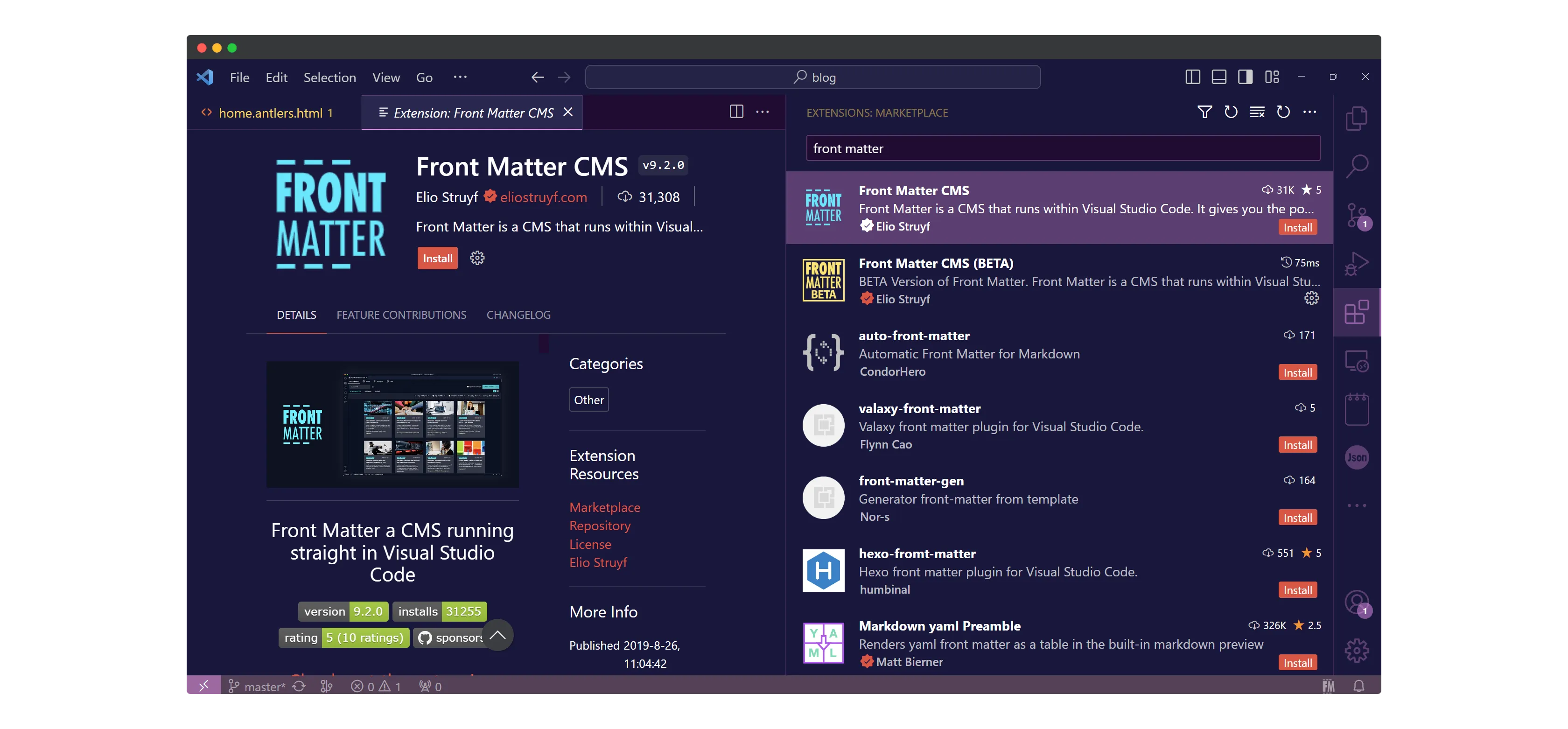Because FM CMS is a Visual Studio Code extension, you must install it first. You’ll find two versions - the stable one and the beta one.