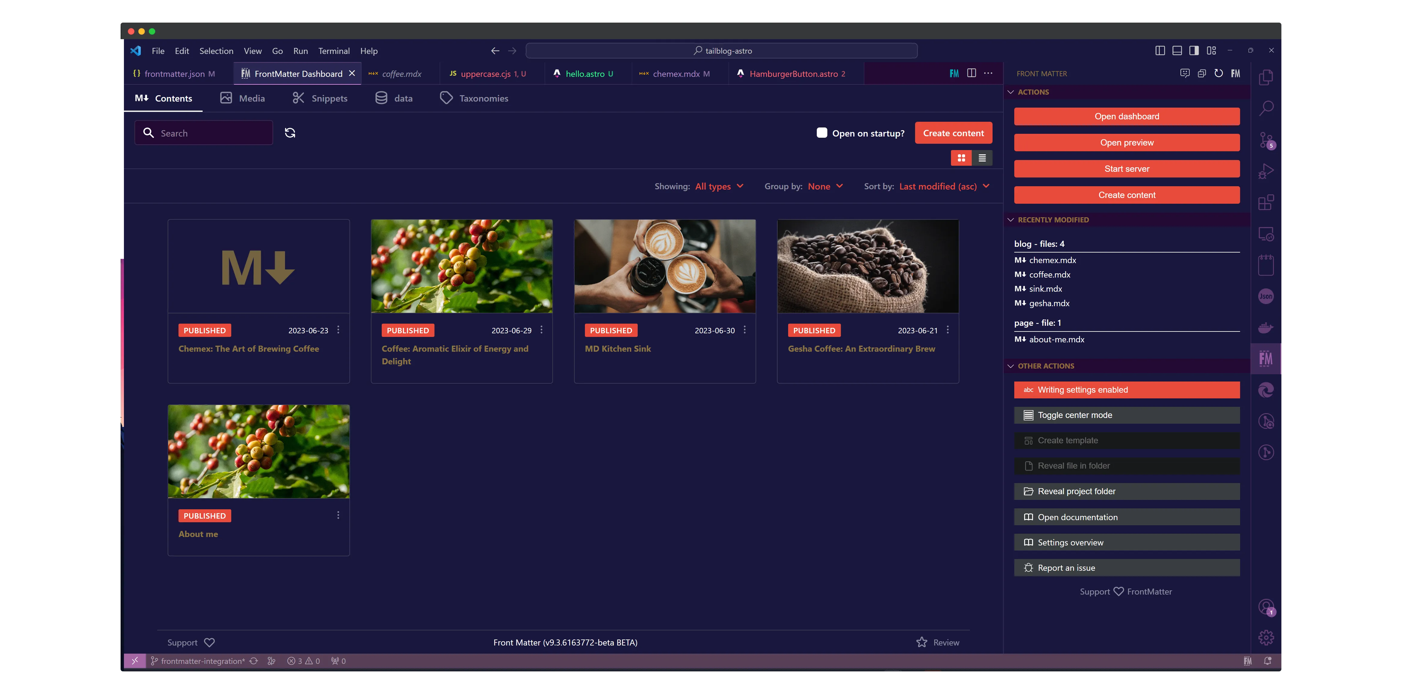 But what if I tell you that there is a CMS that will transform your Visual Studio Code into a proper CMS with content and media management, taxonomies, and more? Say hello to Front Matter CMS.
