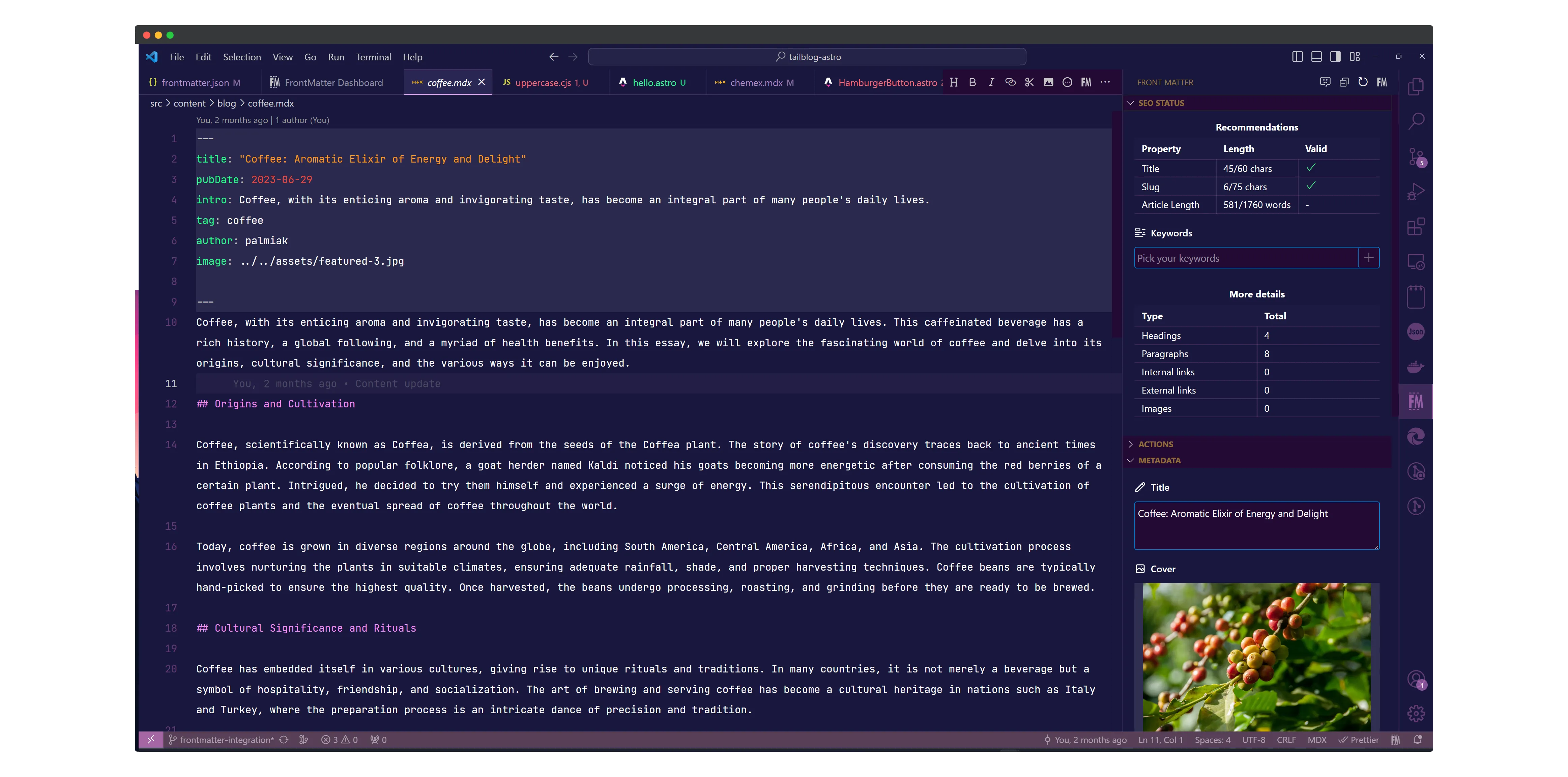 There is also a group that will say that MarkDown and any editor are good enough for them. They are also right. It can be enough, but working with frontmatter inside MD files can be tedious.