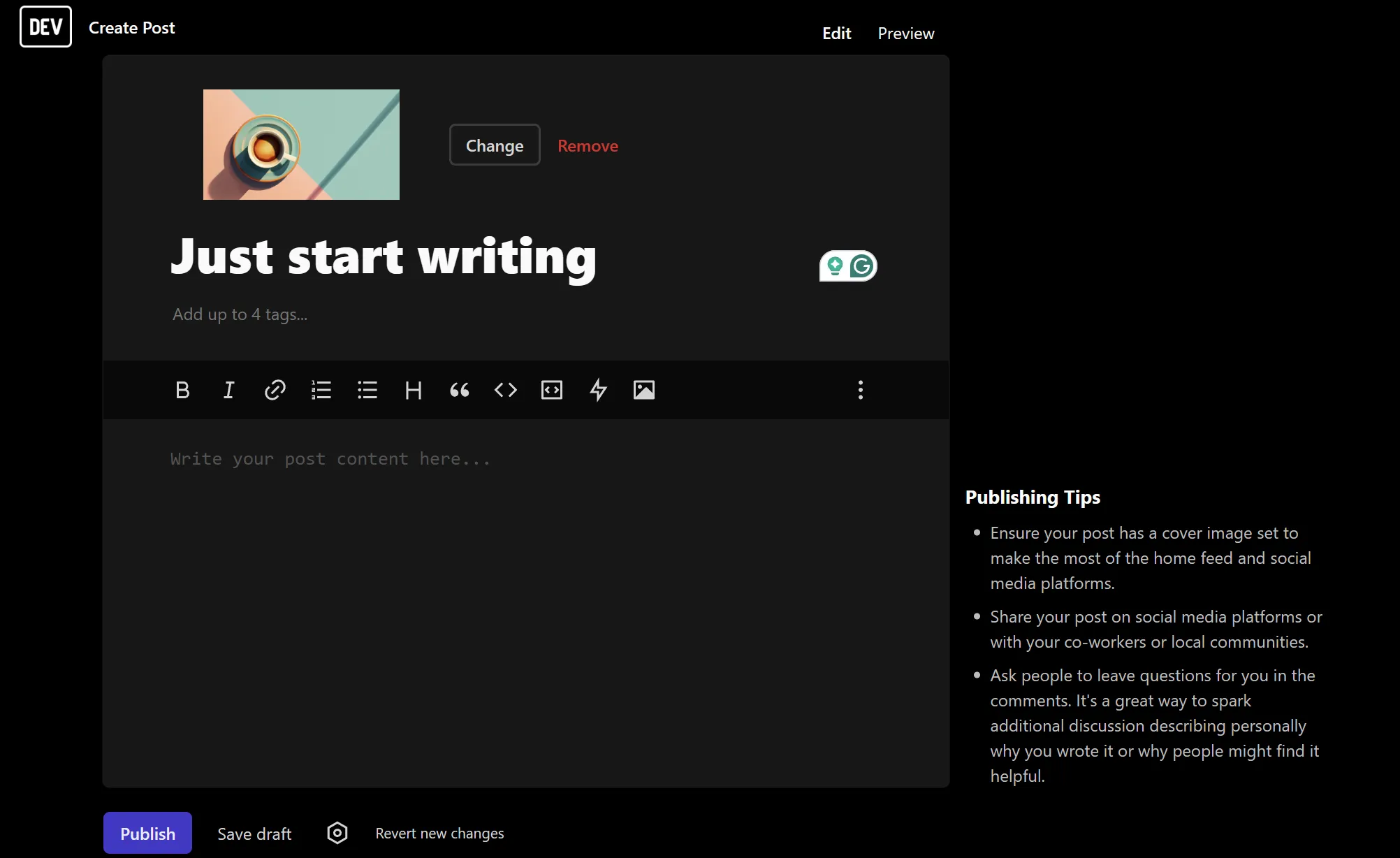 Dev.to is a service that allows you to start blogging in minutes. They focus on dev-related content, so you’ll feel in a good place.