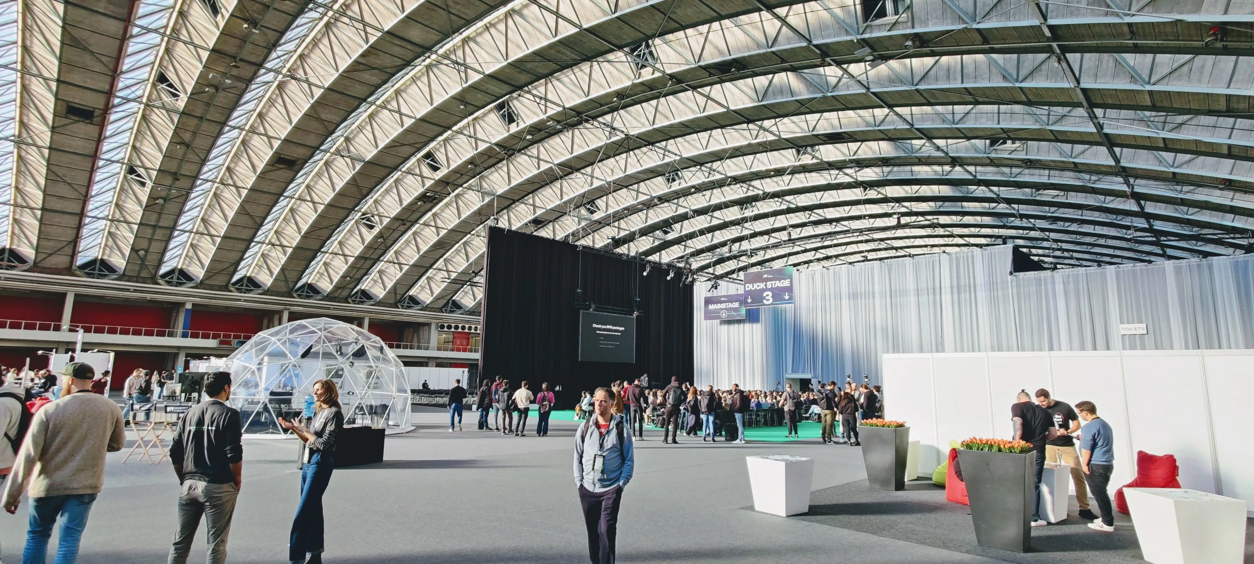 DevWorld happened in a huge hangar, there were 5 or 6 scenes and a huge topic diversity. Also, I was quite surprised that there wasn’t free coffee and lunch (like at the Amsterdam Theater).